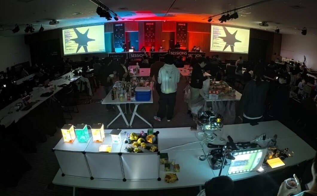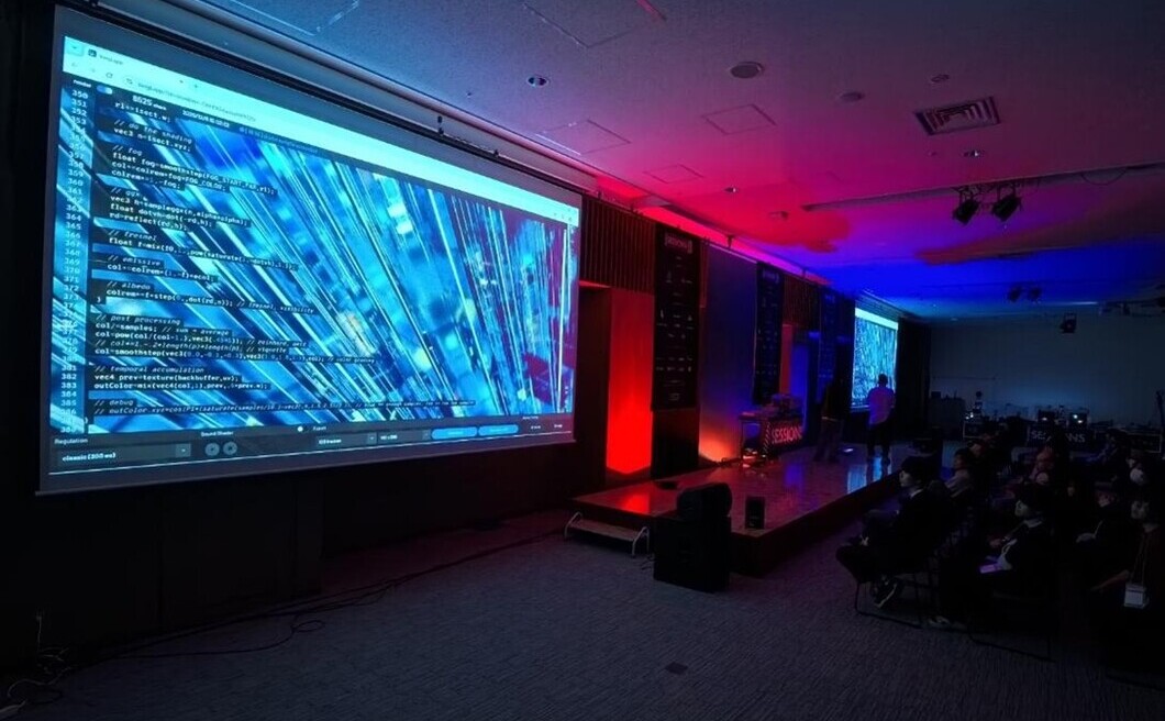 初日は本イベントの楽しみ方の紹介から始まり、Music CompetitionとCode Graphics Competitionが行われました。その後、Showcase Day1、ライブコーディングイベント「Shader Jam」、Audio Visual Event Curated by draw(); Day 1が続き、大盛況で刺激的な1日となりました。