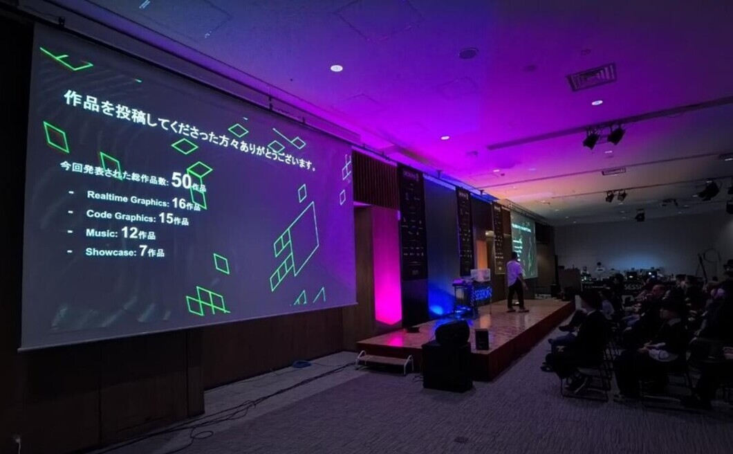 *デモシーンとは、リアルタイムで映像や音楽を生成するプログラムを「デモ」、これらの鑑賞や、その完成度を競い合い楽しむイベントを「デモパーティ」、そしてこのデモやデモパーティを中心としたカルチャーを「デモシーン」と呼んでいます。